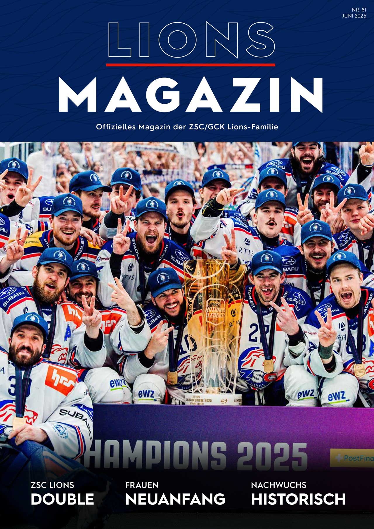 Das Lions Magazin ist das offizielle Magazin der ZSC/GCK Lions-Familie mit spannenden Geschichten aus der Organisation: ZSC Lions, GCK Lions, Frauen, Nachwuchs, Partnerteams. Das Magazin erscheint viermal pro Jahr und zeichnet sich durch seine Vielfalt und das erstklassige Layout aus. Wir wünschen viel Lesespass!